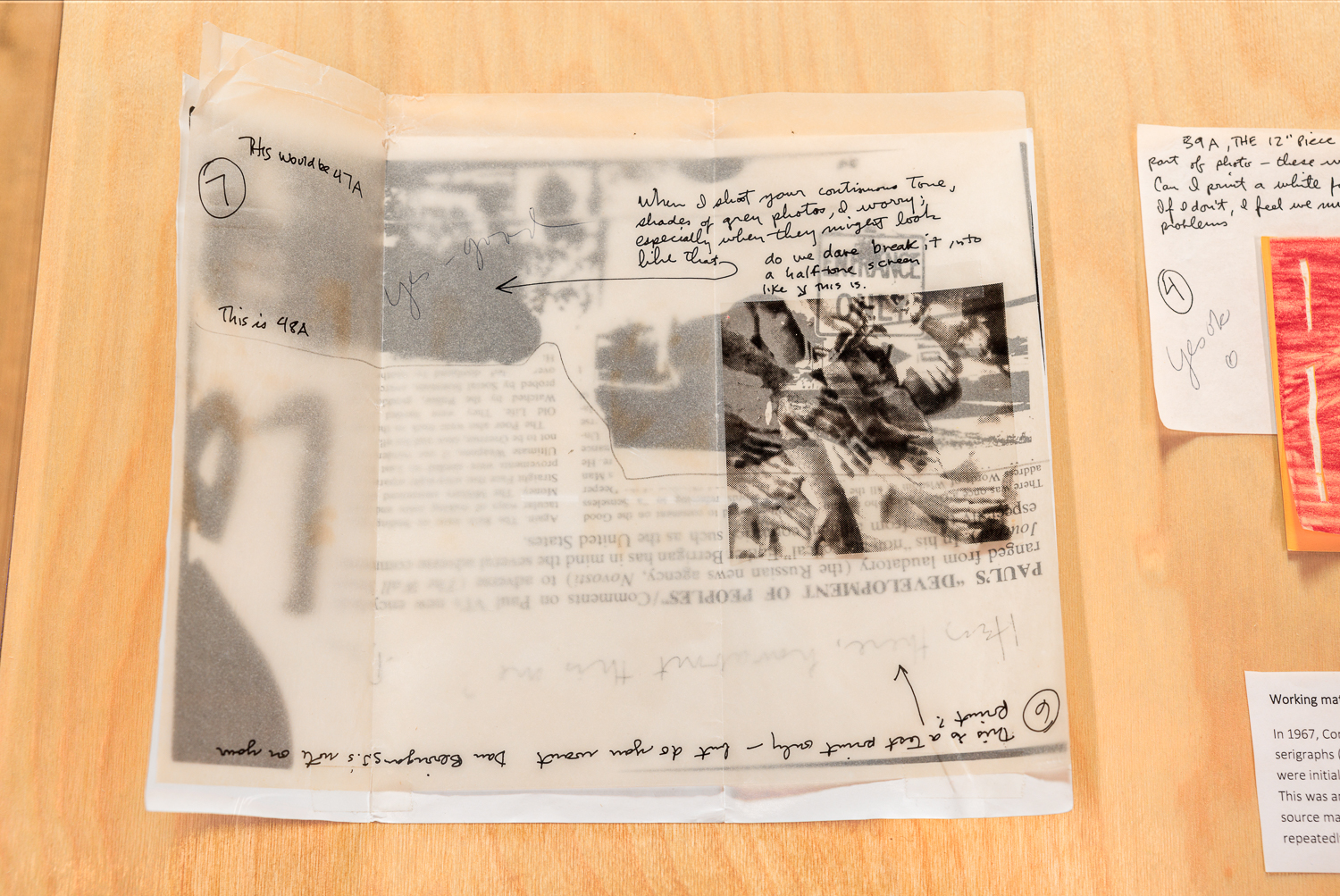 The series responds directly to the Vietnam War, nuclear disarmament, political assassinations, and the civil rights and labor movements. For Corita, this historically charged moment called for a new visual language, and to tackle these topics in her art, she turned to the news. With a keen awareness of how the most politically and socially urgent issues of the day were being framed and disseminated through mass media, Corita juxtaposed imagery from photojournalism, editorials, and news coverage in periodicals like LIFE and Newsweek with quotations from Coretta Scott King, Leonard Cohen, Walt Whitman, Daniel Berrigan, and her students, among others.